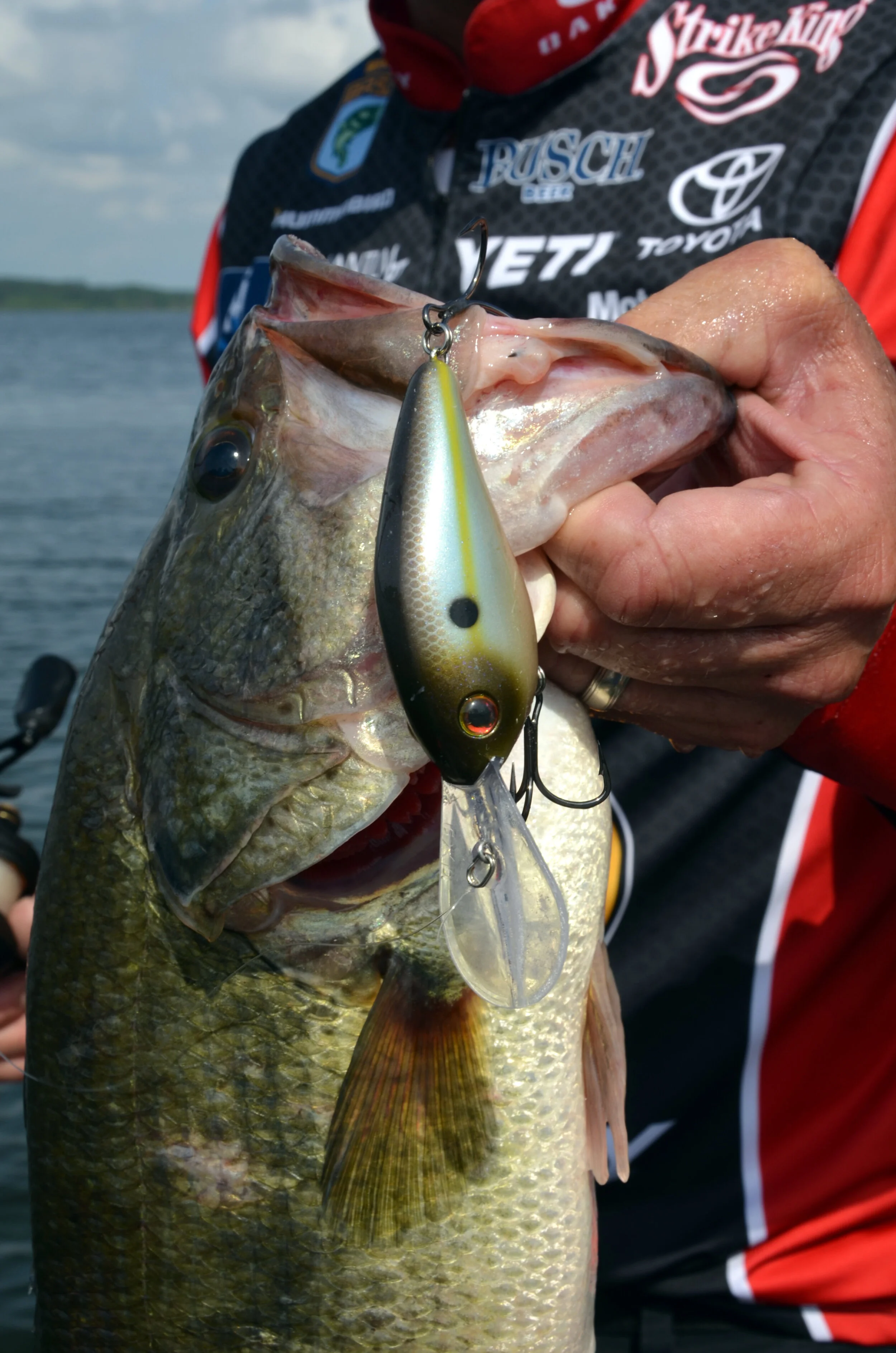 Deep-running crankbaits, like this one used by Kevin VanDam, a four-time Bassmaster Classic champion from Kalamazoo, Mich., to catch a bass, are tiring to work, but they can produce good fish under the right conditions. (Photo by John N. Felsher)