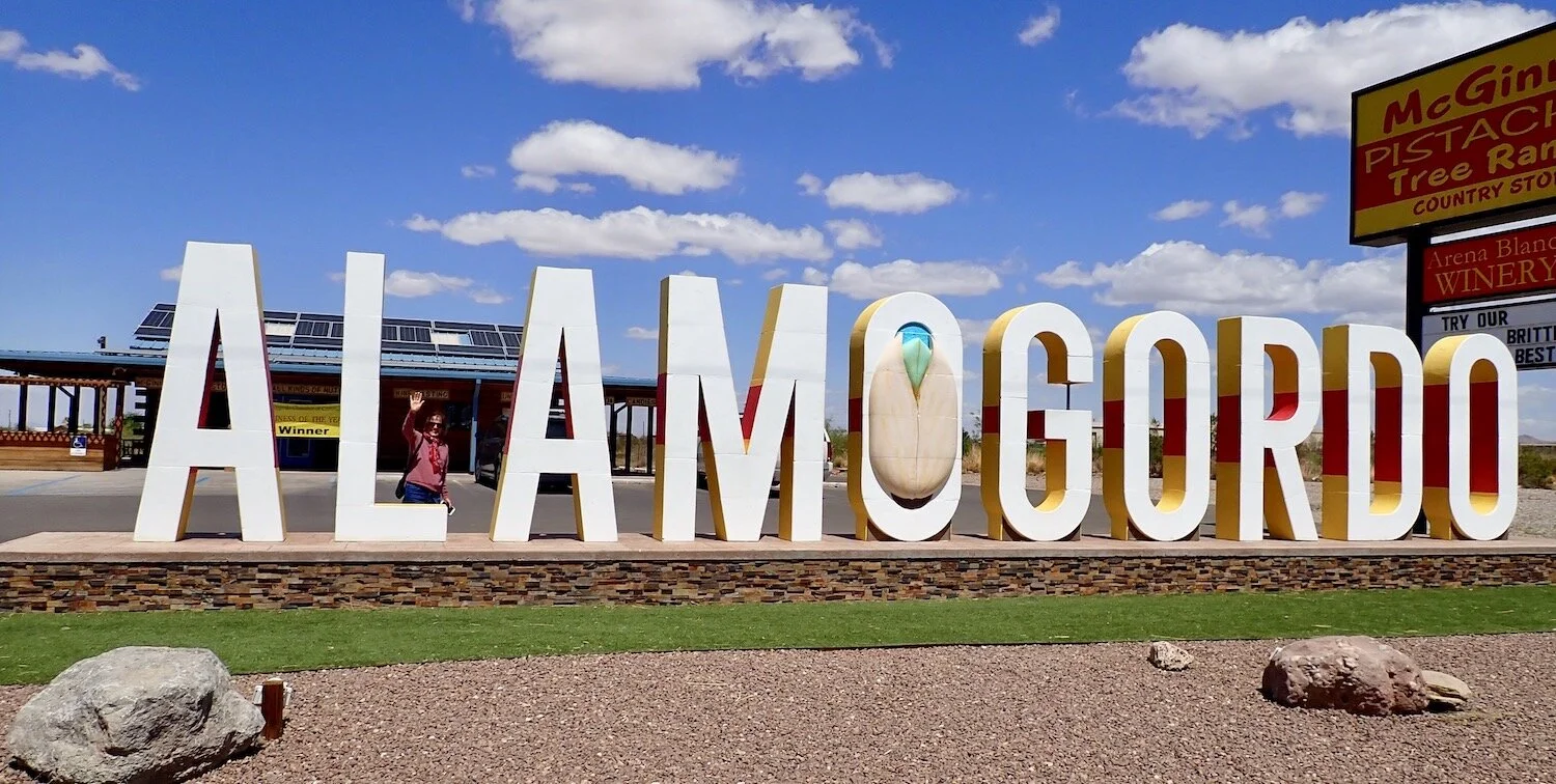 We flattened out onto the Tularosa Basin, a small part of the enormous Chihuahuan Desert that stretches over much of the southwest. Rainfall in in this particular basin averages about eleven inches annually. In spite of that, people live here. The city of Alamogordo is here, and the basin is a major producer of pistachios. You can see the world's largest pistachio sculpture north of Alamogordo on Highway 54 at McGinn's. You will also find the nuts for sale, along with milk chocolate pistachio brittle, pistachio ice cream, and too many other treats to mention. McGinn's merits a stop if you find yourself in the area!