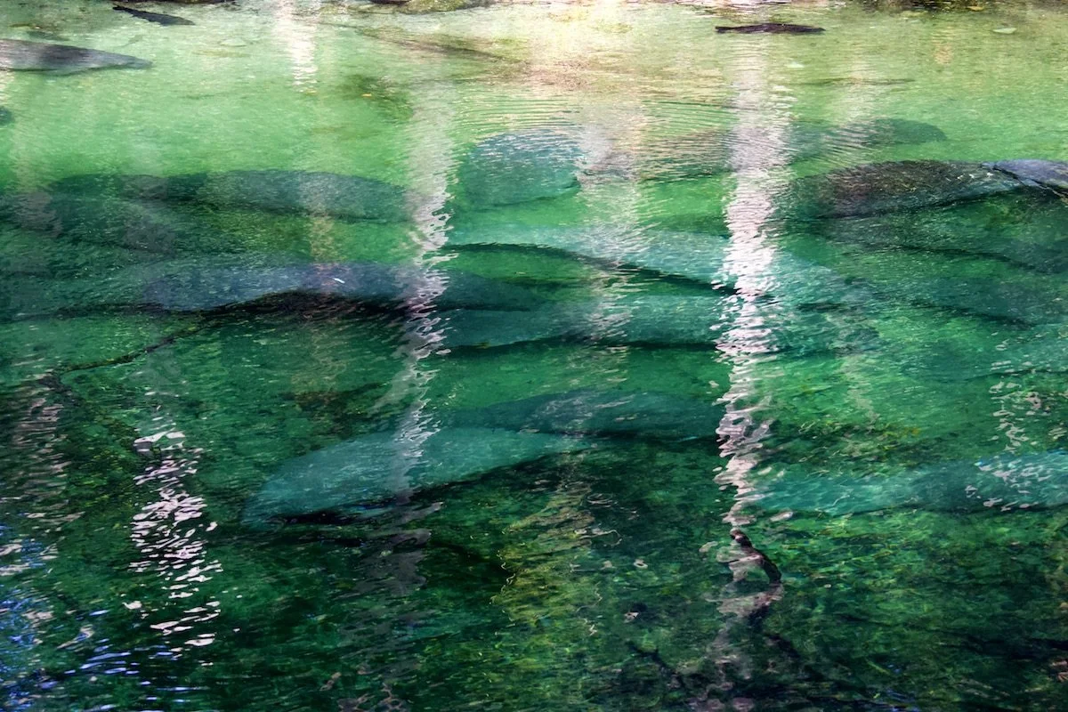 Holy blubber! The spring run was filled with manatees. Hundreds of them! Maybe even 431 (who counts them?). Big ones, little ones. Red ones, blue ones. Wait, that's not right. They were all a fairly uniform shade of gray.