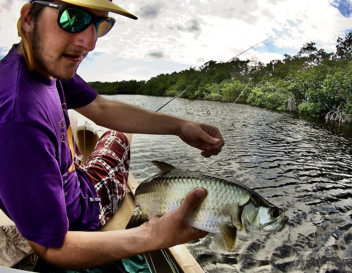 Alex Kumiski with a backcountry tarpon in Everglades National Park, Hell's Bay vicinity